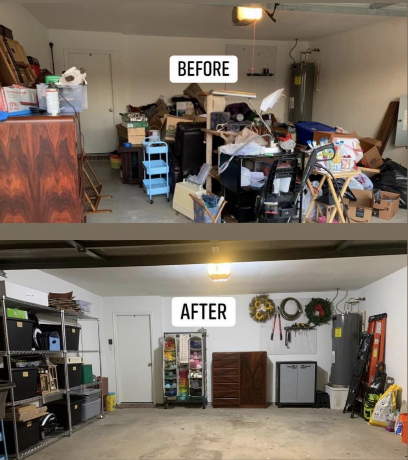 Remove unwanted items and haul away the junk, sweep and refresh your garage floors, and neatly organize the belongings you want to keep